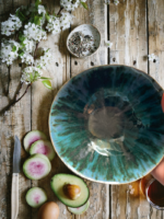 Piękna miska z oryginalnymi nóżkami. Ma bardzo dekoracyjne, przeplatające się kolory tworzące pasma kolorystyczne łączące się w środku miski. Naczynie idealnie sprawdzi się na zdrowe przekąski w postaci orzechów lub drobnych owoców. Oczywiście, co w niej umieścisz zależy tylko od Ciebie.