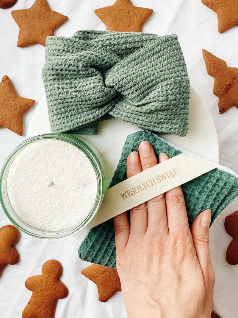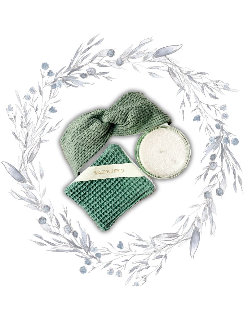 Podaruj sobie lub bliskiej osobie chwilę pełną relaksu i świątecznej magii. W zestawie znajdziesz: naturalną świecę sypaną, bawełnianą opaskę na włosy i miękką myjkę do ciała – wszystko, co potrzebne, by zatrzymać się na moment i oddychać pełną piersią.